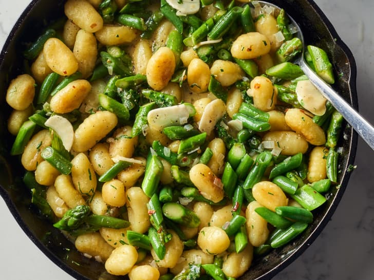 August 2024 – Gnocchi Skillet with Green Beans and Asparagus. This one had lots of vegetables and garlic. I used two types of gnocchi that I bought from Trader Joes. One regular potato based gnocchi and the other made from cauliflower. I almost liked the texture and flavor of the cauliflower better. Both were really good. The combination of textures of the gnocchi and crisp of the green beans and asparagus made this dish. Found this recipe on the “thekitchen” website – https://www.thekitchn.com/kll-green-bean-and-asparagus-gnocchi-23198777